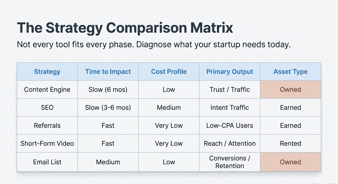 Not every strategy fits every startup. Here's a quick way to think about which to prioritise: